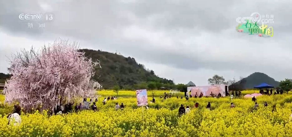 在贵州省贵阳市南明区永乐乡,万亩桃园迎来盛花期,与千亩油菜花海交错铺展。同时,当地还推出了系列特色文旅项目,国风音乐会、花海趣味互动通关游戏、农事研学等,让游客尽享春日踏青的不同乐趣。