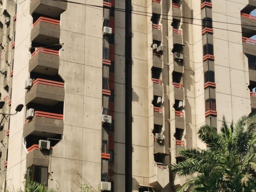 16日晚间,记者正在电脑前处理工作,剧烈的爆炸声突然在头顶响起,冲击波随之袭来,驻地房间剧烈震颤,屋内一刹那烟尘四起,刺鼻的硝烟味直冲鼻腔——一架无人机击中了记者驻地所在的拉希德酒店。