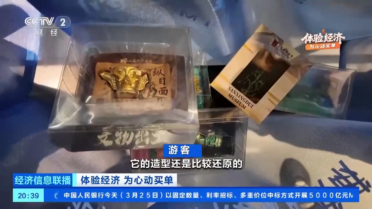 总台央视记者吴佳灵:在四川德阳的三星堆博物馆,从青铜大立人到青铜神树,这里的文物,凭借神秘感,吸引着源源不断的游客。而它们的形象,也被做成了冰箱贴、毛绒玩具等文创产品,成了很多游客在离开博物馆之前专门想要带走的一份“三星堆记忆”。