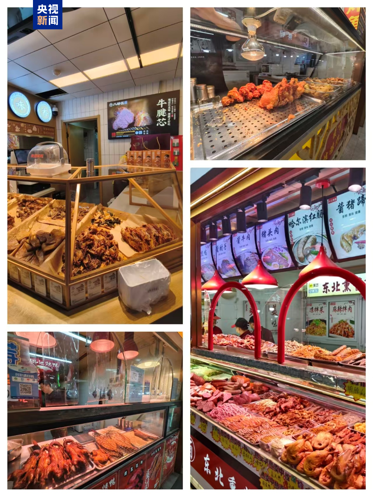 △在北京市朝阳区农光里市场,熟食类、炸货类档口使用暖色灯的商家非常多