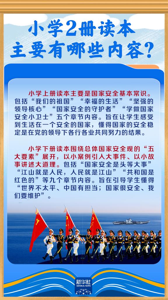 4月15日,第十一个全民国家安全教育日。近日,专为青少年学生编写的《国家安全教育中小学生读本》(以下简称“读本”)由人民出版社与人民教育出版社联合出版发行。这套读本包括哪些主要内容?是如何编写的?提到了哪些国家安全领域?跟随海报,一起了解。