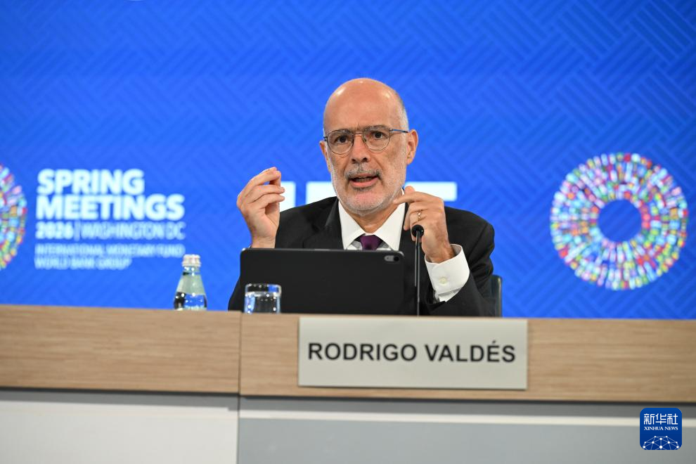 4月15日,在美国华盛顿,国际货币基金组织财政事务部主任罗德里戈·巴尔德斯在《财政监测报告》新闻发布会上讲话。新华社记者 李睿 摄