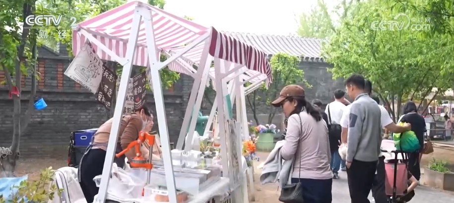这里就是北京前门的三里河街区。漫步其间,满目皆是春日盛景。粉白花枝临水而立,青瓦会馆错落有致。据了解,仅清明假期,这里的日均客流量就突破了上万人。而比美景更吸引人的是这里可观、可感的心动体验。
