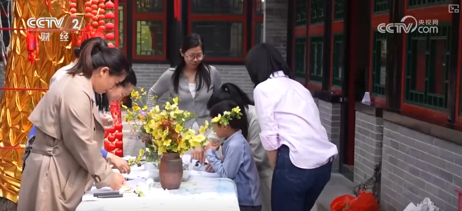 为了接住这波春日流量,隐藏在胡同深处的老会馆也推出了新玩法。一阵阵锤声响起,就可以把春天拓印在布上。