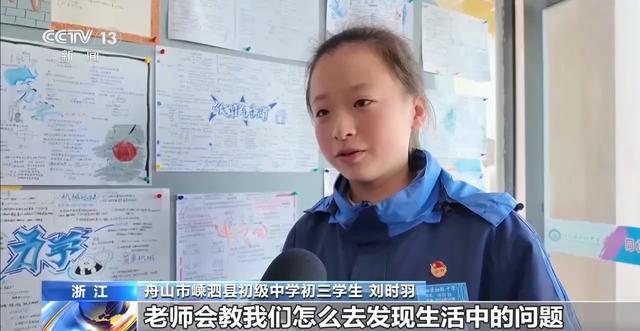 浙江省舟山市嵊泗县初级中学初三学生刘时羽:这个是我们的项目化作业,这是自己做杠杆,老师会教我们怎么去发现生活中的问题,然后一步一步思考。