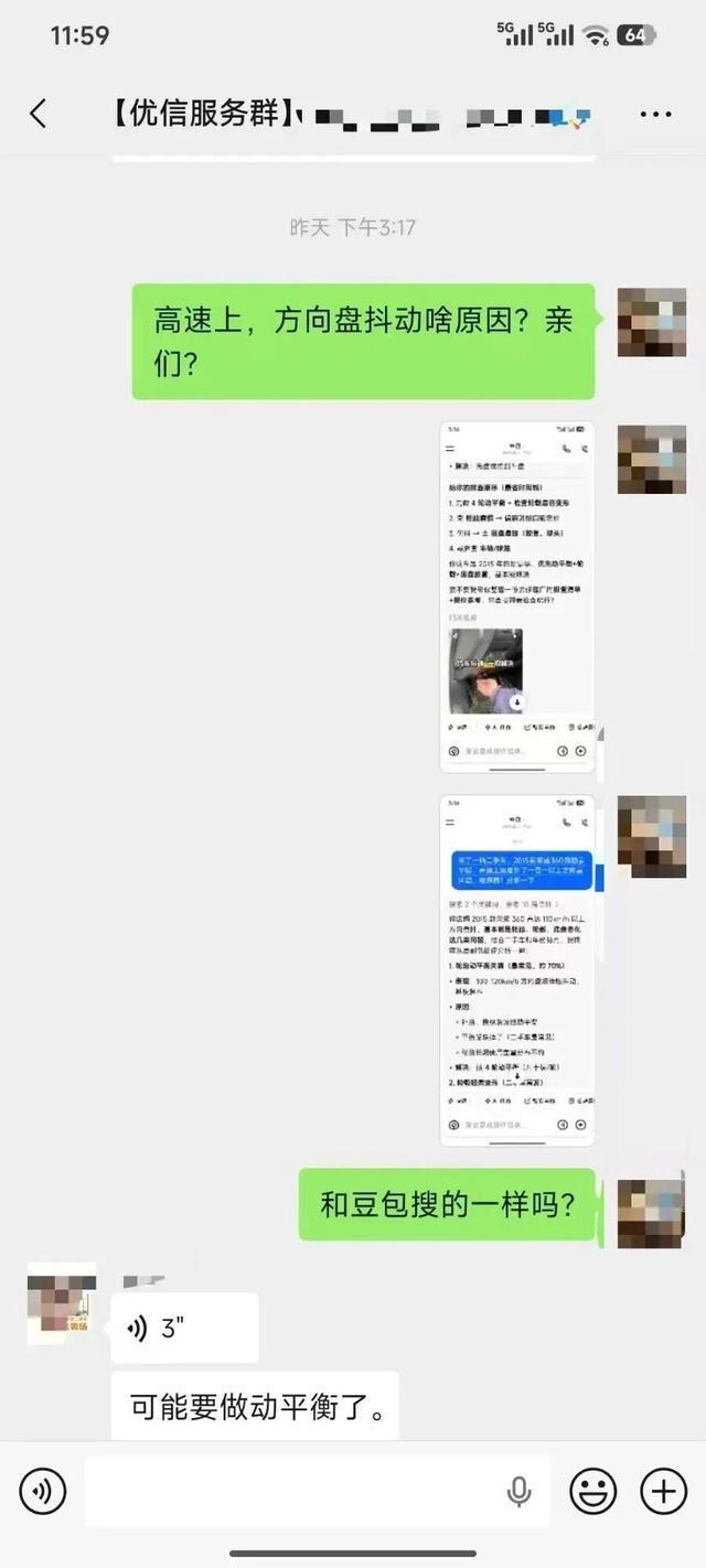 优信二手车平台工作人员表示方向盘抖动原因是:“可能要做动平衡”(央广网发 受访者供图)