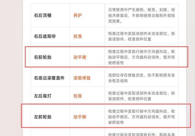 另一个细节同样令陈芳夫妇困惑,当他们在优信服务群中反映“高速上方向盘抖动”时,群内工作人员回应“可能要做动平衡了”。但《车况综合说明书》显示,车辆的“右前轮胎动平衡”“左前轮胎动平衡”均已做过整备。