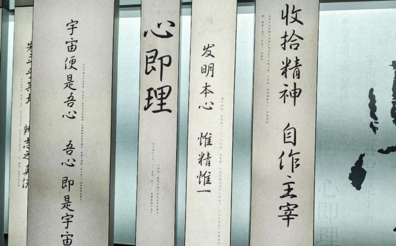 走进金溪陆九渊纪念馆,素白长布垂悬馆中,心学箴言沿布面舒展——“宇宙便是吾心,吾心即是宇宙”的宏阔,“收拾精神,自作主宰”的昂扬,“六经皆我注脚”的通透……字字铿锵,风骨凛然,心学宗师的精神气象尽现眼前。