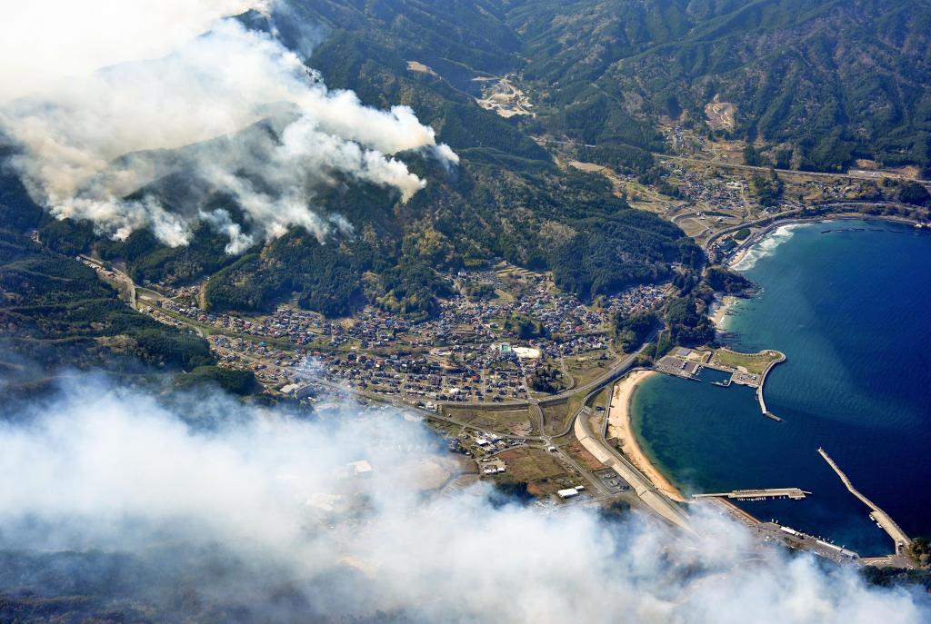 这是4月24日在日本岩手县大槌町拍摄的山林火灾现场。新华社/共同社