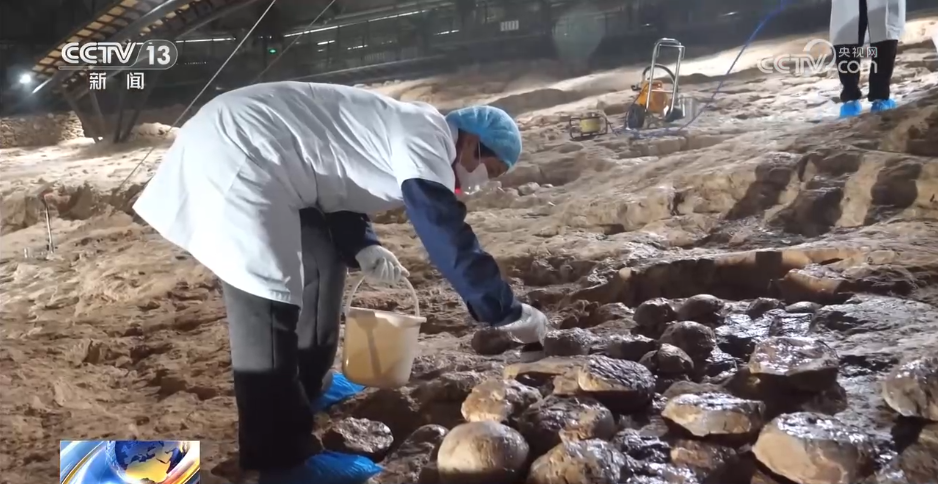 在湖北青龙山恐龙蛋化石群国家级自然保护区遗址3号馆,工作人员正忙着给最后一处化石遗址实施“防护”。