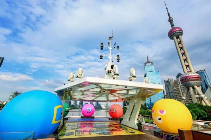 装置《猫的叠加态》以薛定谔的猫为灵感,船厂塔吊化身猫咪的电动鱼竿,构成历史与未来的双重维度。承办单位:上海市城市规划设计研究院、同济大学、上海市杨浦区规划和自然资源局、上海杨浦滨江投资开发(集团)有限公司