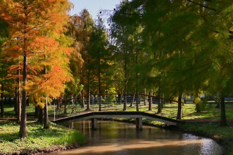 漫步新海健康主题公园,脚下是红栎叶铺就的松软地毯。抬头看,阳光为红栎的叶片镀上金边。在博爱长廊小憩,看红栎与水杉为伴——绿的沉静,黄的明亮,红的炽热,共绘秋日交响。